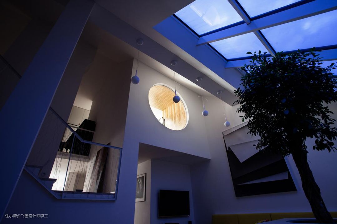 她家客厅最有特点的就是头顶的天窗,感觉客厅就像是个阳光房,白天采光超好,晚上还能躺在沙发上看星星,很浪漫!