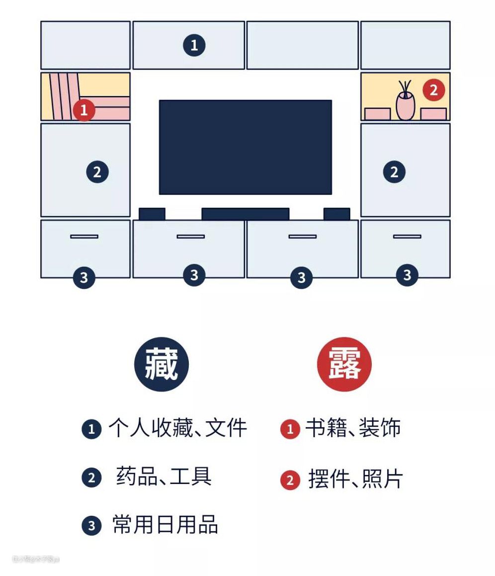 3、电视柜遵循二八原则,有藏有露,20%露出要好看常用的,80%藏起那些易乱,没美感的物品。