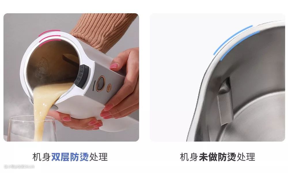 普通豆浆机通常是底部带有刀头,底部带刀头清洗未必到位,每次洗都要小心翼翼,害怕伤到手,听起来就特别危险;主要是加热与搅拌都在底部,承载负荷重,电机容易受损。