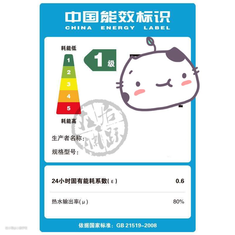 比如上图中的这台热水器,系数是0.6,容量是60L(标识上没写容量,去热水器身上找),那么它保温24小时,耗电量就是0.6*(60*0.015+0.8)=1.02度。