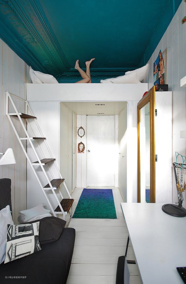你想象生活在一个10平方米空间?即使是单人房间,它也很小。您几乎无法在此空间中放置床和一些储物,因此您还需要将沙发和书桌放在哪里?好吧,答案很简单:在地板上。它们怎么都适合?他们不是因为床是在天花板下抬高的,所以床下有足够的空间用于存放。