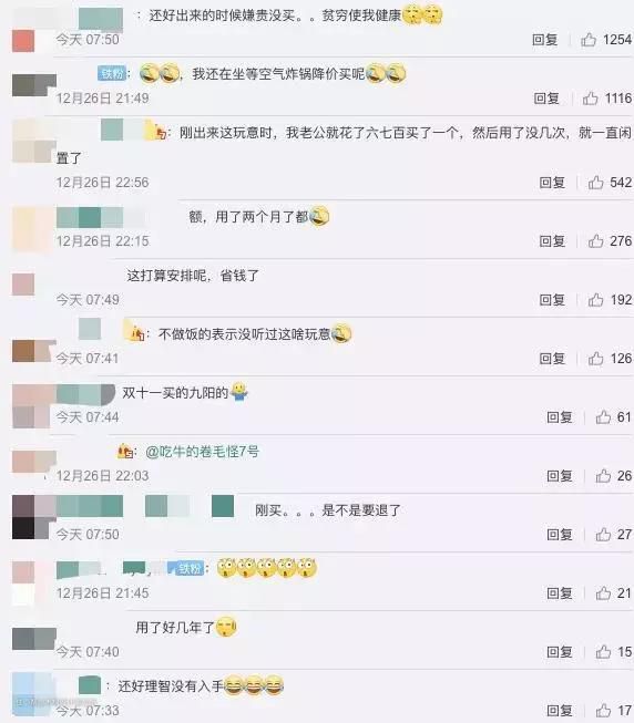 新闻一出来,有庆幸还没有入手空气炸锅的,有想退货的,也有表示省钱了的。