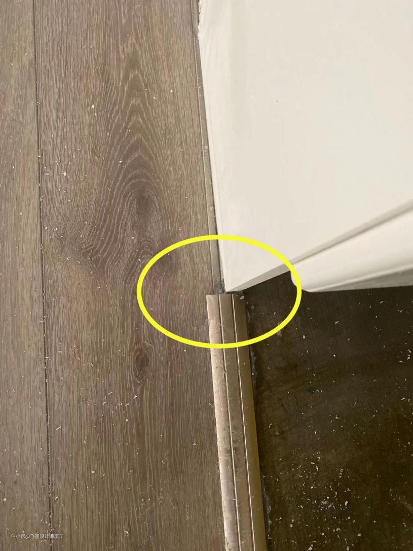 但我家工人却给地板安装扣条的时候,竟然突出来这么大一截,难看又影响使用,像这样: