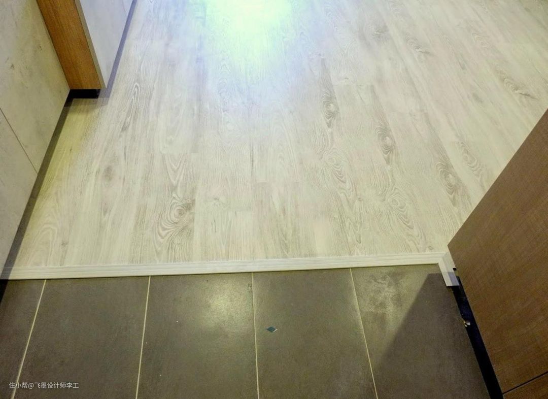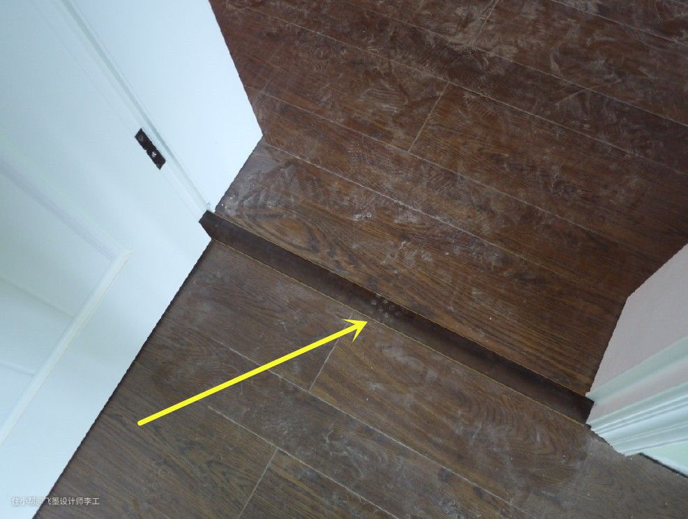 新房我决定地面铺木地板,这样冬天不冷,夏天不热,即使将来有了小孩,跑跑闹闹,也不用担心安全。可是地面还没铺完,我却被工人的做法气坏了:铺木地板到门边的时候会加扣条。正确的做法像这样: