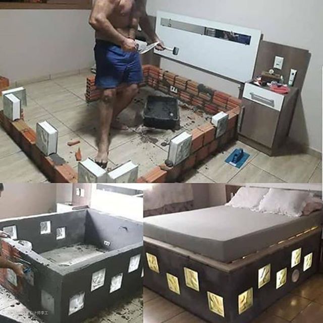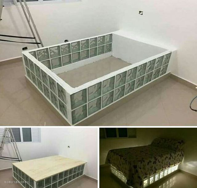 结果成品出来了,我简直是啪啪打脸,原来邻居家并不是单纯的红砖砌床,而是还加了玻璃砖,没想到之前那土到掉渣的红砖床只是了加了15块玻璃砖而已,竟然火遍了整个小区,都想上门学习!