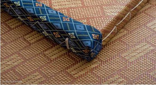 其次,草席垫子的包边也是决定其做工好坏的因素之一,一般采用米黄色维纶线缝制,阵脚均匀、棱角齐整的质量较好;如果用的是白色涤纶线缝制,且针脚杂乱,棱角不明,包边鼓出的质量较差。