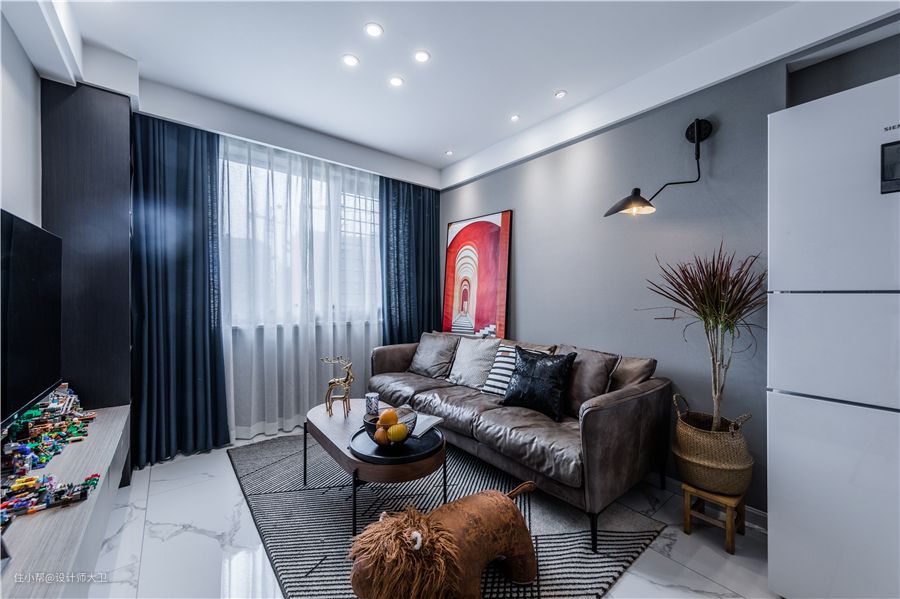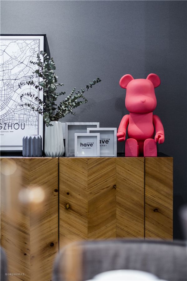 为了调和两位业主的需求,小编做了一个混搭配色。整体选择了灰色和原始木色为主调,增添一些独具特色的跳跃浮夸亮色做点睛,在整体不失简约质感同时,加入了令人眼前一亮的装饰品,使其不再单调。很开心 ,看了效果图之后,两位业主都表示很喜欢,就是自己想要的。