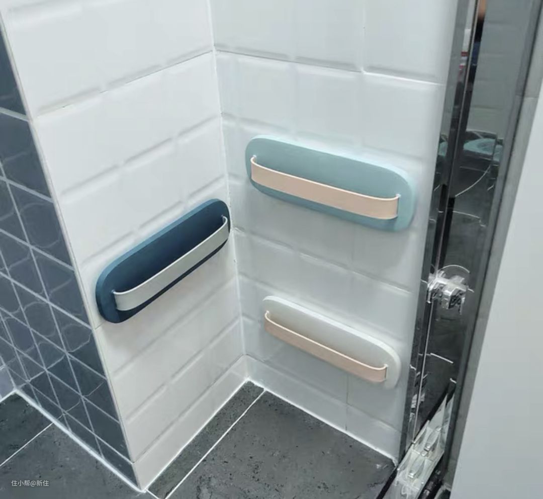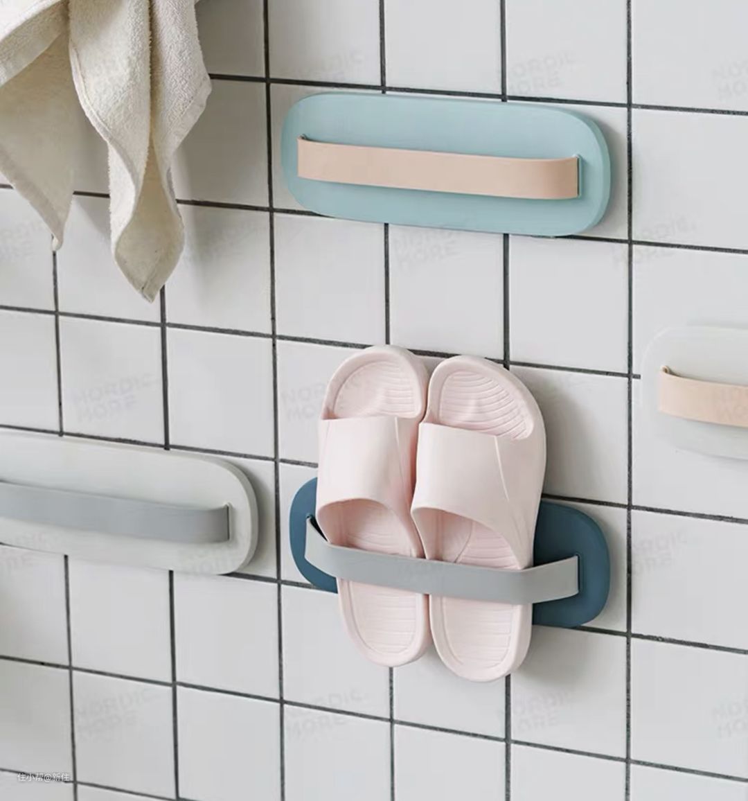 单只收纳的拖鞋架,就没有那么多问题,即便是遇到这样的拐角墙面,两侧都可以壁挂粘贴来收纳。拿取也比多只收纳更方便。