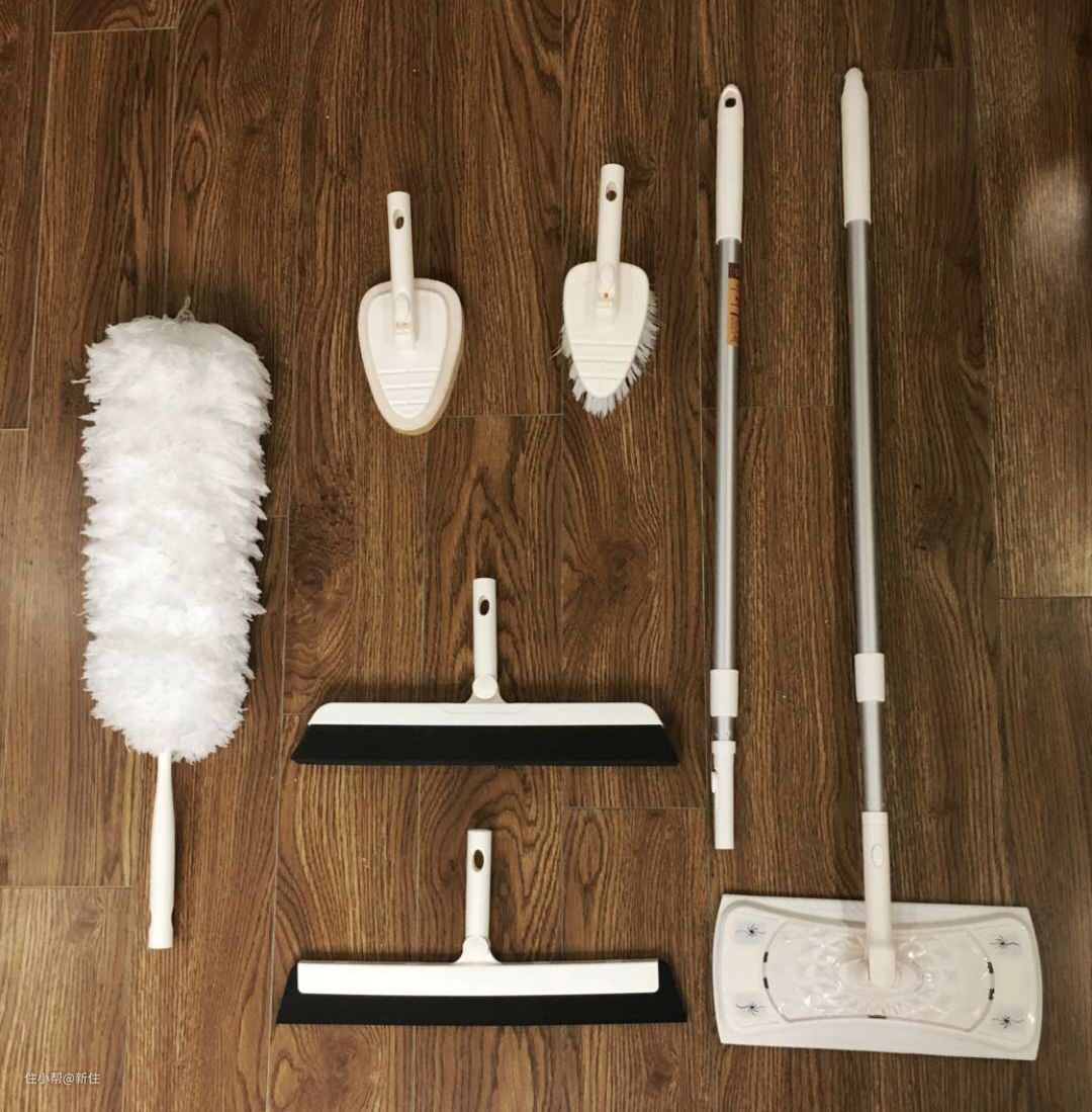 家里的清洁工具五颜六色不美观也不好收纳,可以换成这种一杆通的清洁工具套装,一个清洁杆,N种清洁头都可以使用。