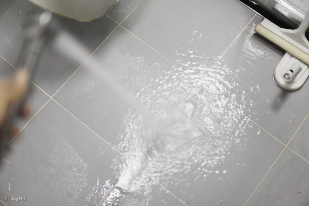 日常冲洗浴室地面,冲完用刮水扫把刮一刮,地面恢复如新。