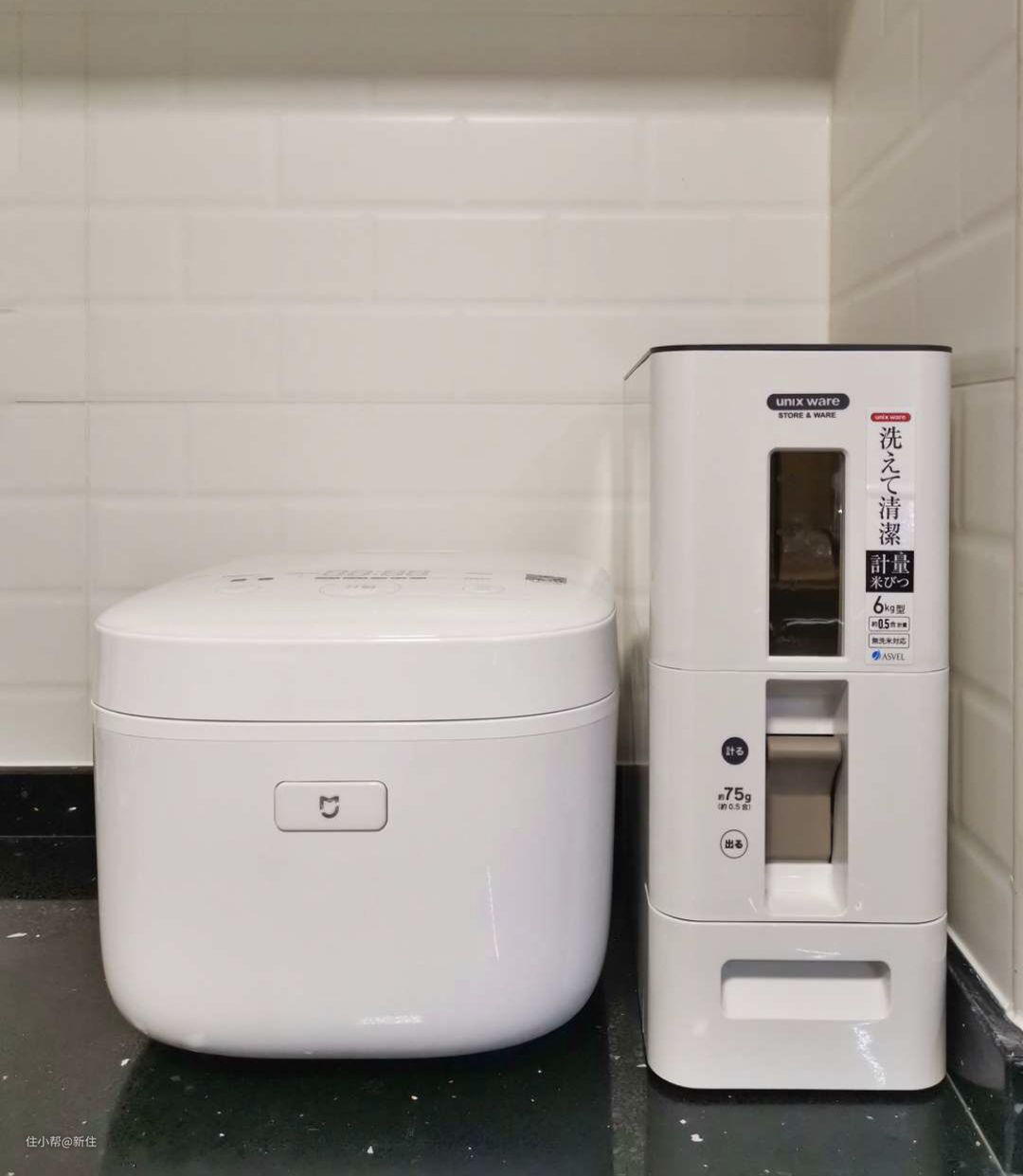 日式可计量米桶是目前厨房用过最好用的收纳米箱,因为颜值高,所以能放在台面电饭煲旁边,不占地,取米方便,取完直接倒进锅里,清洗煮饭,两步搞定。比普通米箱更快捷,也节省时间。