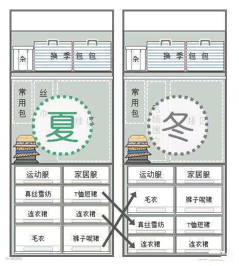 使用抽屉式收纳箱,可以很好地给衣服分类,遇到换季,也不用把抽屉内衣服全部拿出来再次整理,而是根据之前整理好的衣服,上下调整即可。让收纳当季衣服的收纳盒放在顺手的位置。