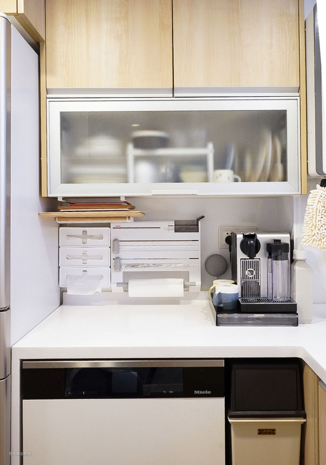 下面则是纸巾架,壁挂厨房用纸,算是厨房使用频率最高的收纳好物之一。