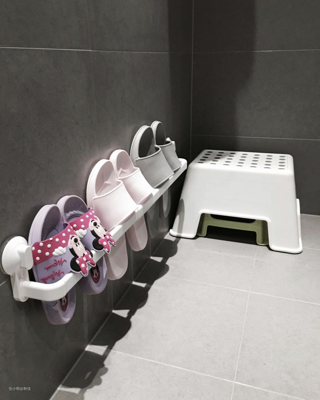 浴室有个拖鞋架很有必要,洗澡换鞋方便,平时地面也不会很乱,拖鞋又能得到及时沥水干燥。