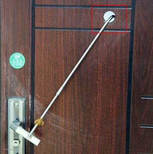 ▼按压解锁能有效防止如下这种猫眼撬锁。