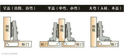 阻尼铰链是市面上常见的类型,因为它的顺畅开闭的性能和优秀的消声效果,广受消费者喜爱。可按开门角度区分,90度铰链最为普遍(也有120度、150度、170度,根据厨房设计灵活使用。)直臂、小曲臂、大曲臂饺链分别对应“全盖”、“半盖”和“内藏”三种方式。
