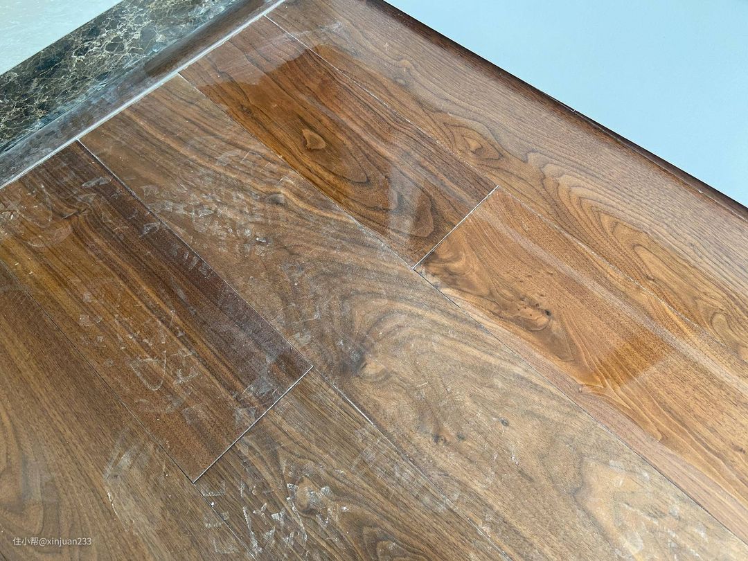 ▼这张图片可以看出,木地板本身比较脏,安克创新eufy小悠E5智能扫拖一体机器人扫拖过的地板与没有扫拖过的地板形成了鲜明的对比。
