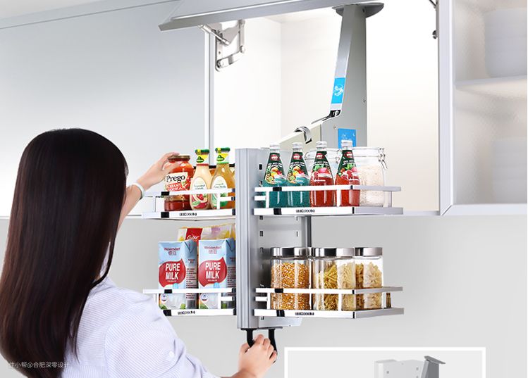 不过,需要注意的事,想要安装这种升降拉篮,提前你家吊柜的高度最好大于60cm,深度大于30cm,先确认好家里吊柜的尺寸大小,再选购合适的拉篮,这样便可以避免了买回来装不了又要退换货的麻烦事发生。