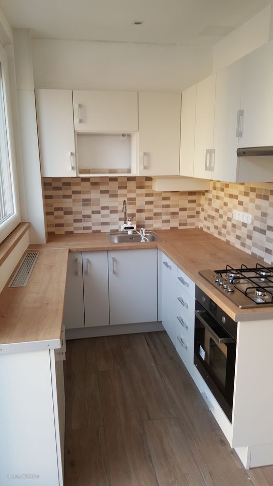 木板走一圈,怕一做饭会磕碰到头,那么你可以将木板内缩15公分左右,没有谁规定木板一定要和吊柜一样宽。只要能摆下油盐酱醋这些调味料的瓶瓶罐罐便足矣了!