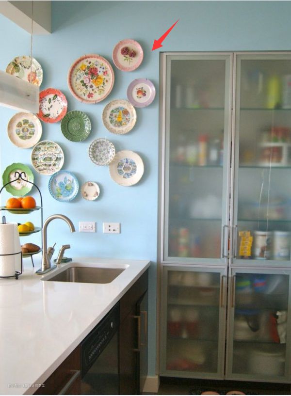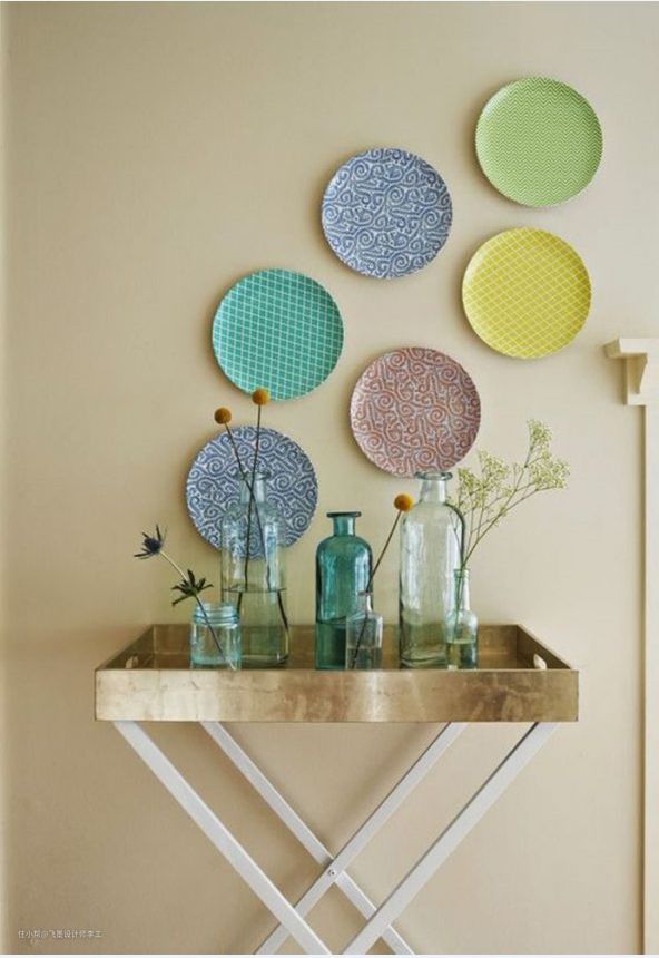 根本就不用考虑装在哪里合适,尤其是色彩鲜艳的彩绘盘,在走廊的尽头、厨房的台面、客厅角落处都挺百搭。