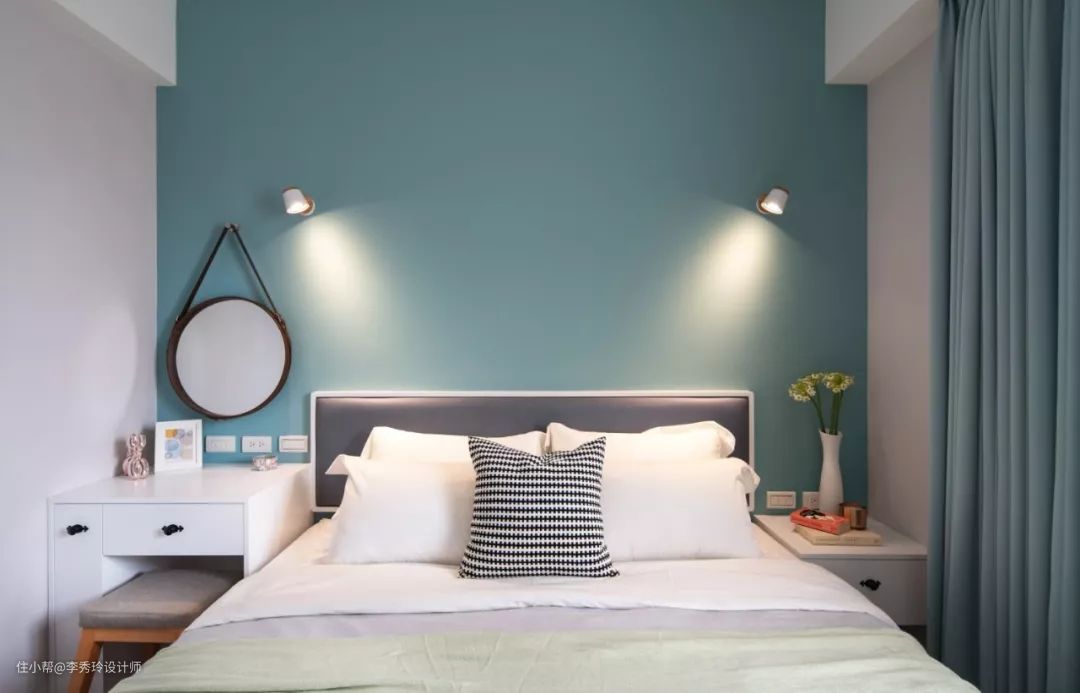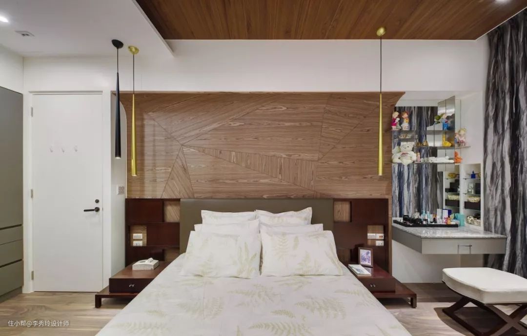 梳妆台和床头柜的结合是很多小面积卧室可以考虑的设计,充分利用空间,使用也很方便。与床头架结合在一起的梳妆台,有的可以买到成品,有的需要让木工师傅现场打造。如果是现场手打,梳妆台的宽窄高度等尺寸也可根据卧室实际空间大小和使用需求进行调节。