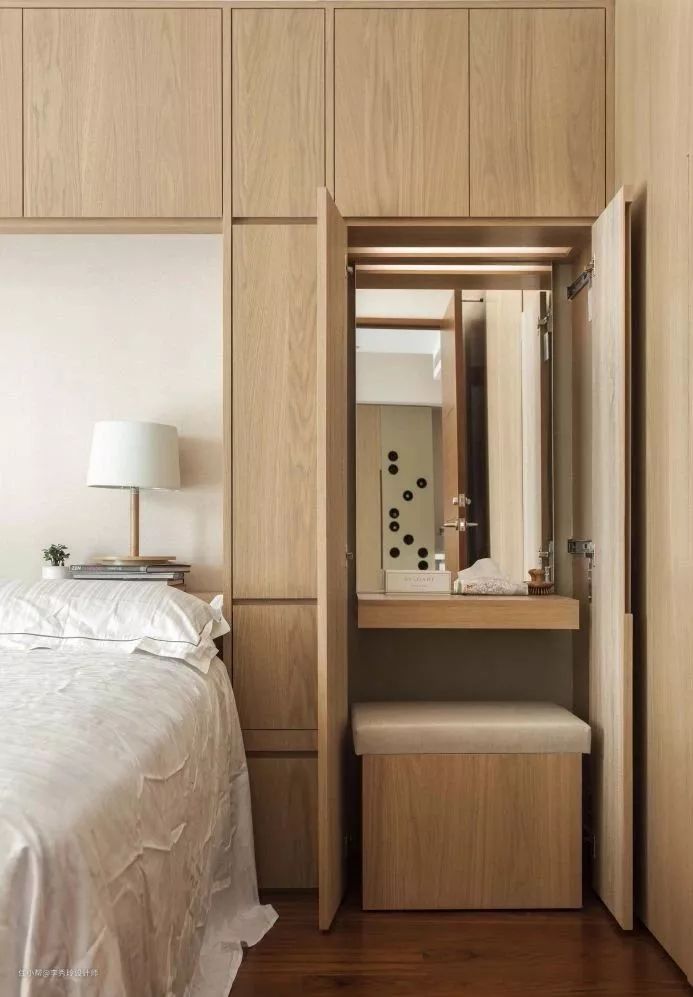 这种隐藏在衣柜里的梳妆台,可以了解一下,美观大方隐私性强!