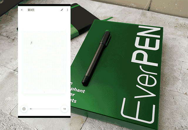 将EverPen与App进行连接配对后,直接可以在笔记本上书写,App上就可以同步传输。书写的内容还可以支持整个书写的轨迹动作1倍到10倍的自定义速度播放。