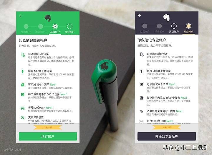 在这里有一点需要提一下,印象笔记账号有4个级别分别是免费、标准、高级以及专业账号,连接笔时,如果选择免费账号是连接不上的,因为根本不会跳转出连接的画面,不知道是官方bug,还是潜在摆设,不同级别的账号对应着不同权限,这点咱不做过多的探讨。