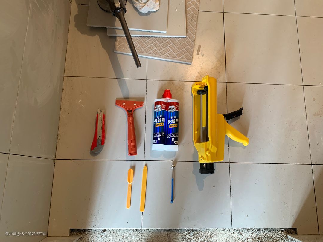家里装修,各种超预算。所以有些东西能够自己来的都自己,比如美缝。但讲真,之前从来没有美缝经验,到网上看了许多美缝教程后,发现其实并不难。所以赶紧买上材料和工具准备开干。