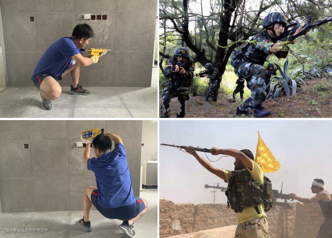 关于美缝枪的拿法,我归纳了下,大致有两种:常规“持枪”方式和武装分子“持枪”方式。