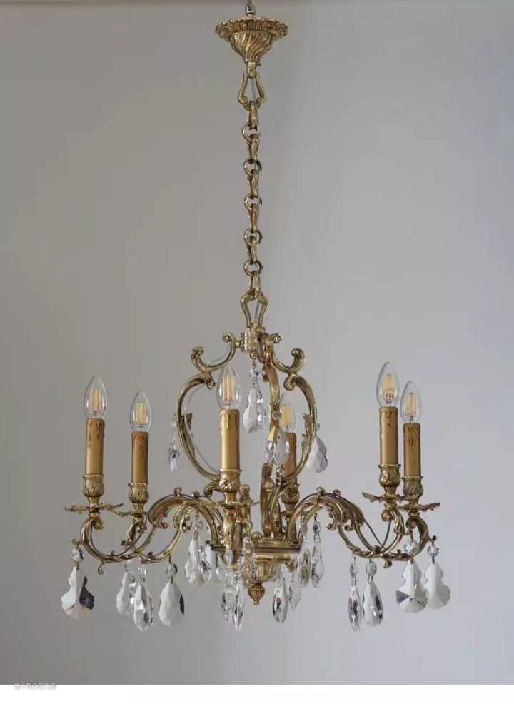 伽罗生活 JALO 经典六臂黄铜水晶吊灯 小户型复古黄铜客厅吊灯