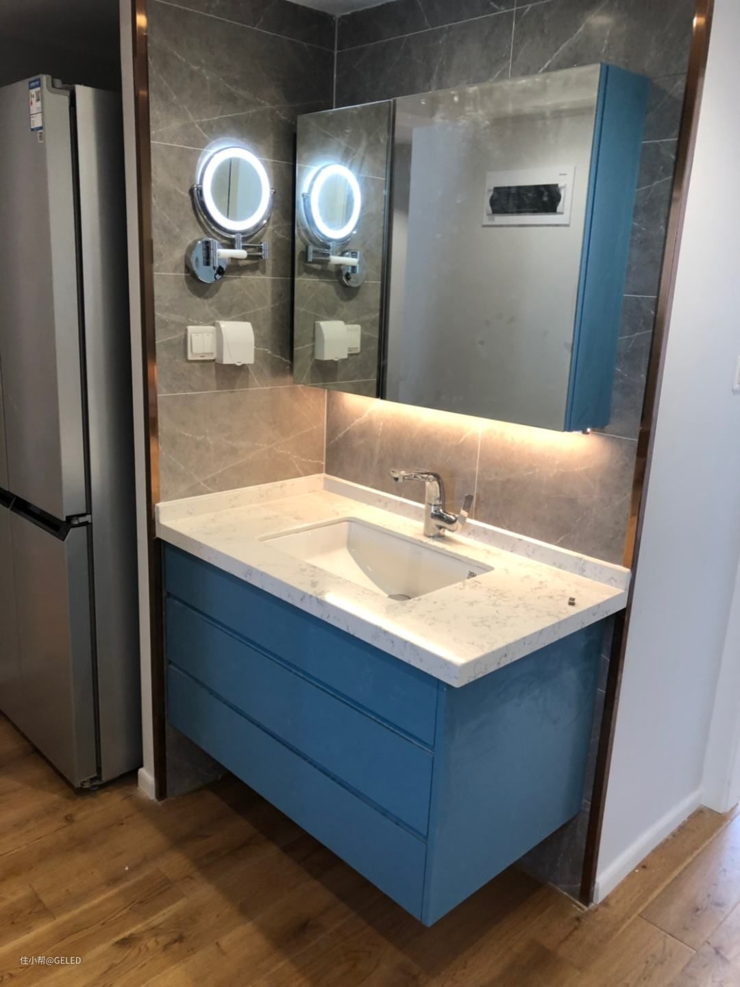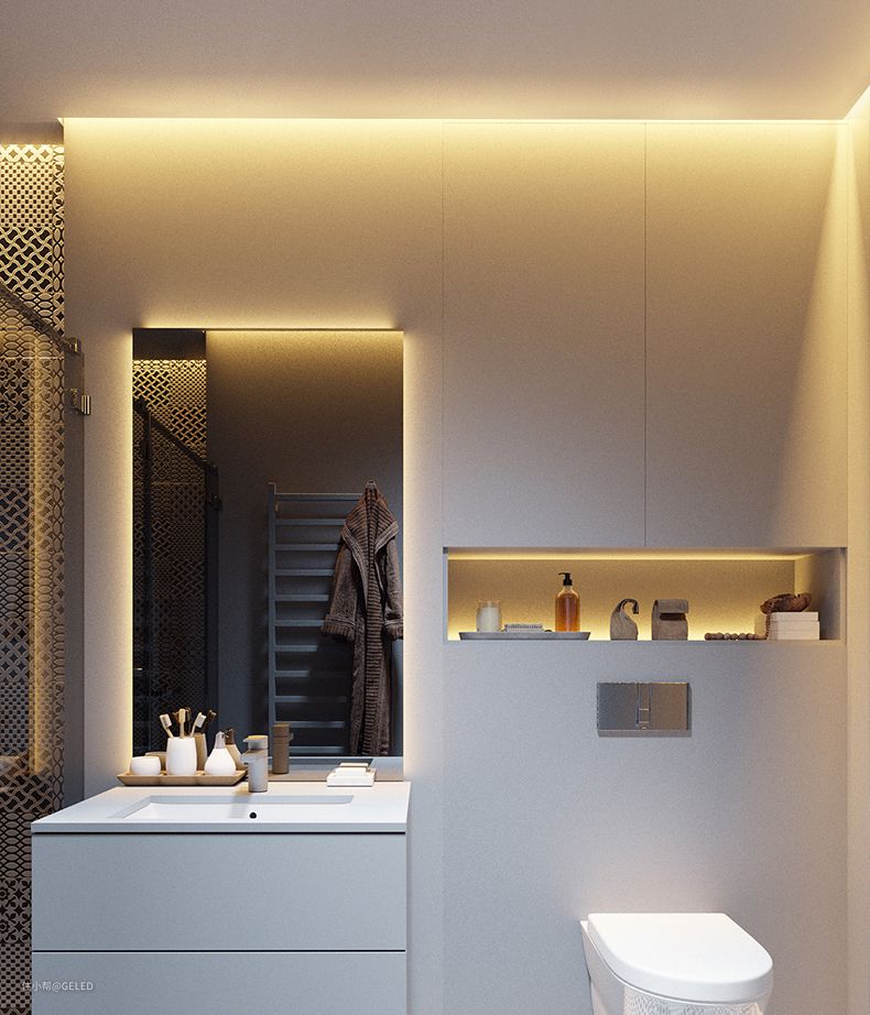 灯带在各种柜下发挥着它的洪荒之力,可以弱化空间的封闭感,开阔视觉。