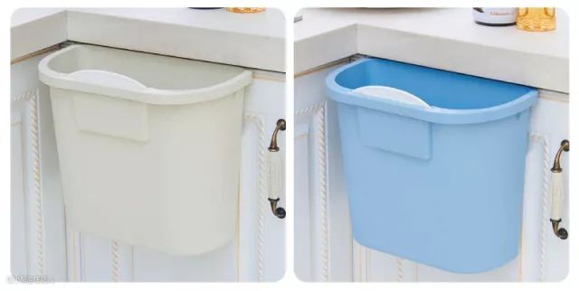 范儿友@胖胖家就用这个:垃圾桶是半圆形的,挂在水槽旁边的橱柜门上,台面的垃圾随手就扫进去,同时因为位置比较高,扔垃圾也很方便,基本不会掉出垃圾桶。