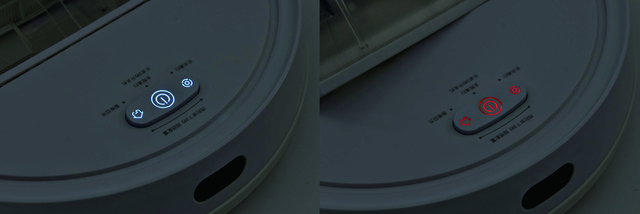 这个小开关用于感应尘盒是否取出。尘盒取出后,按钮指示灯变为红色,机器无法启动。装回尘盒后指示灯变回蓝色。