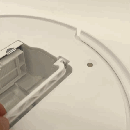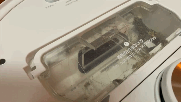 在拆出尘盒的时候,我看到了云米的另一个小心思----尘盒提手在放下的时候,可以当做尘盒的锁止机构。