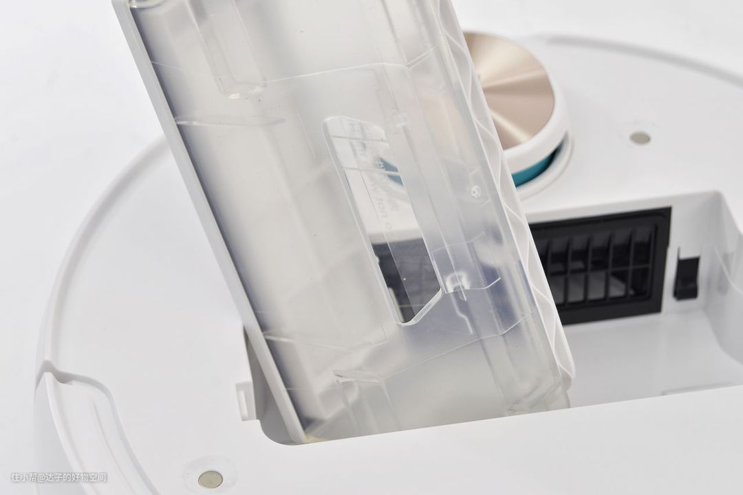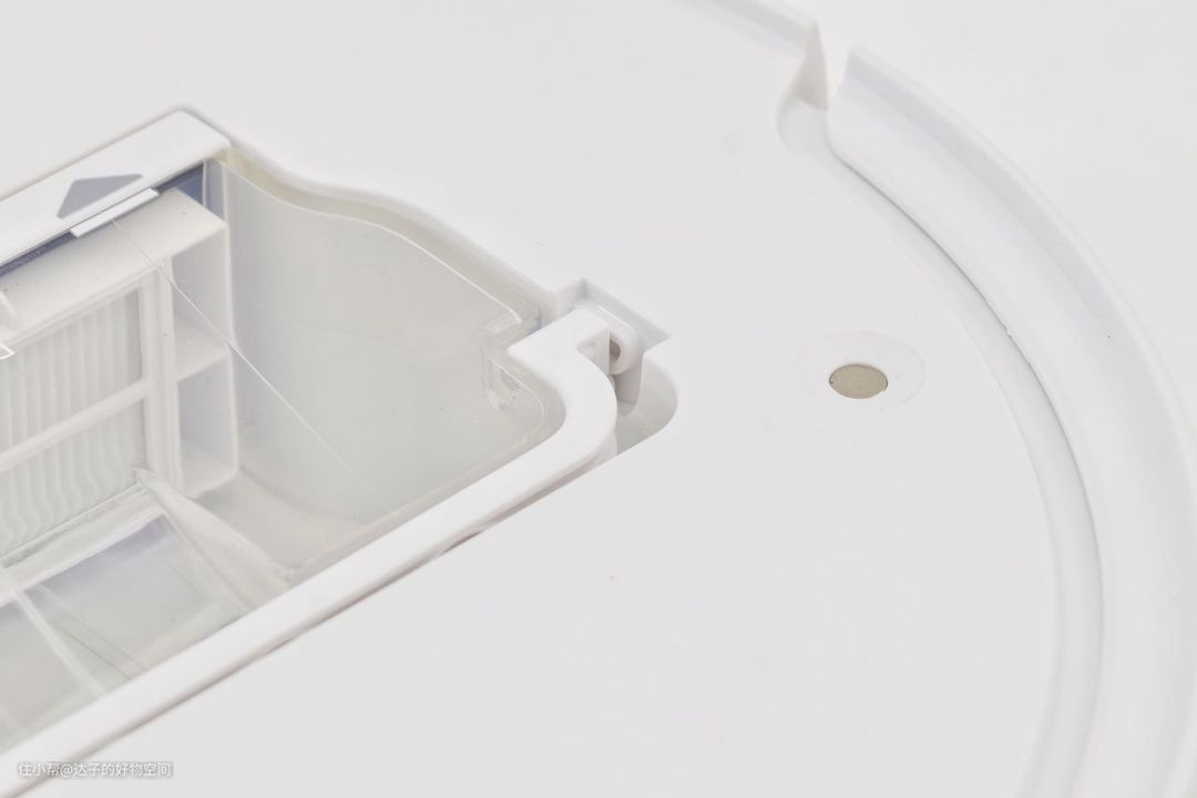 在尘盒内部我又发现了第三个小心思----尘盒灰尘入口位置设计了一块小盖板。