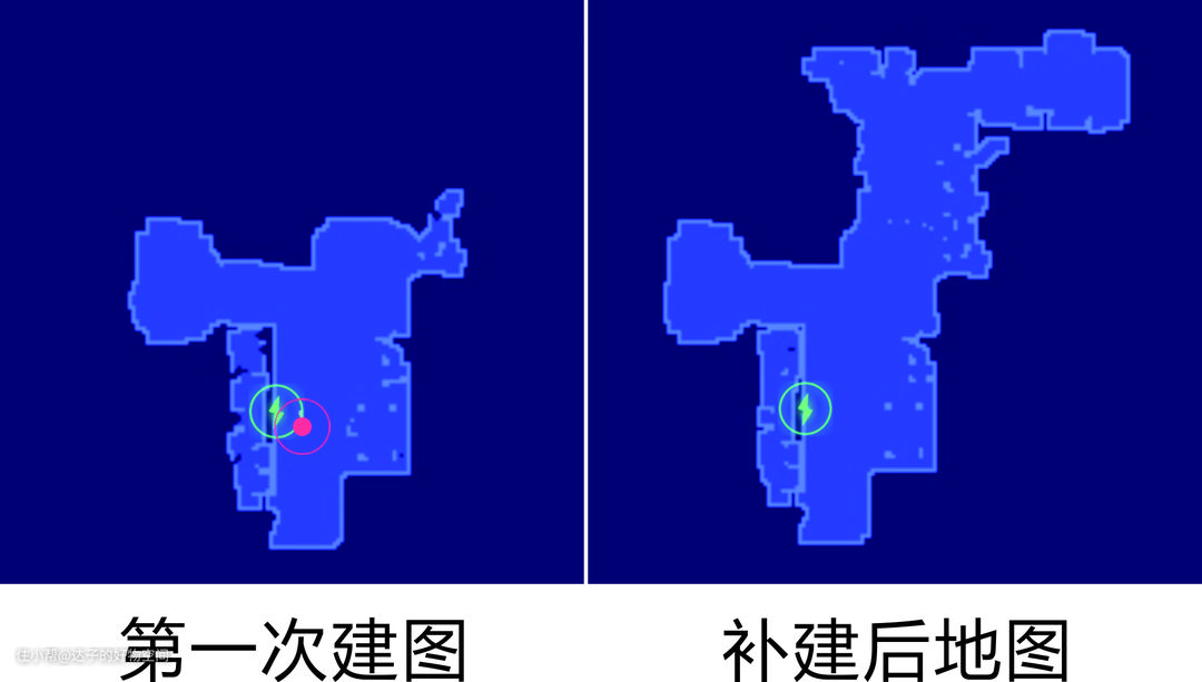 让机器人先清扫一次后得到下图左图。然后拆除隔断让机器人再清扫一次,得到下图右图。