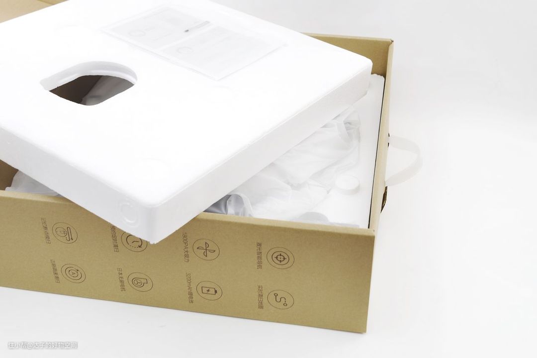 和目前很多同类产品不同的是,云米这台扫拖一体机内包上下层均使用泡沫内包。理论上对于产品的保护会更好。