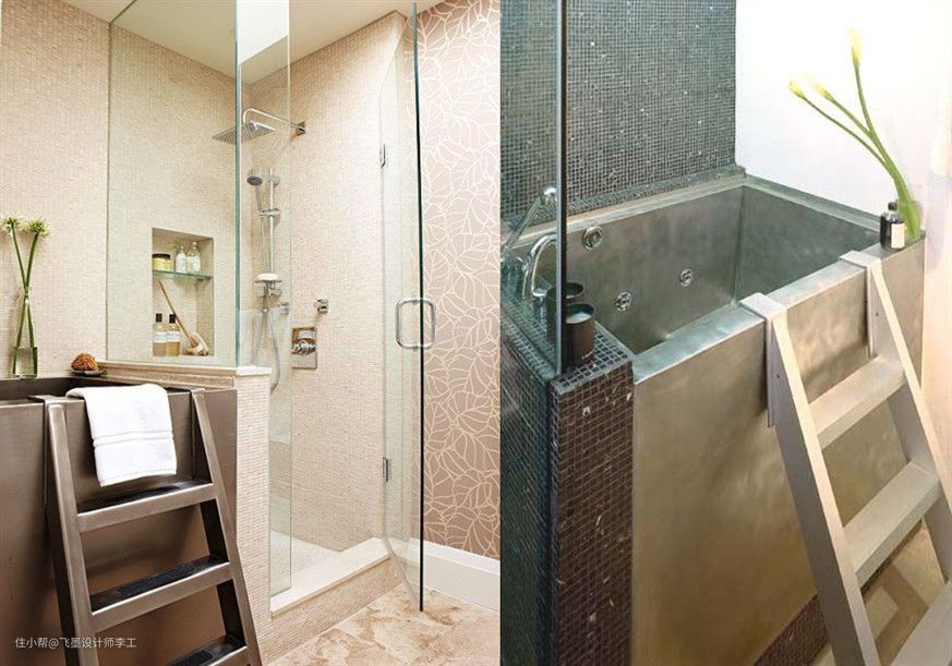 我在装修前先把亲戚朋友家的卫生间看了遍,做个参考。有朋友家在淋浴房里砌个淋浴坐凳,这样淋浴时也能坐坐,对于老人来说,绝对是暖心防护设计,但大家见过沿着浴缸边砖砌个台阶,跟淋浴坐凳一样的吗?