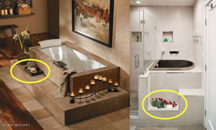 正常砖砌浴缸的高度为70公分左右,这样浴缸有足够的深度才能满足泡澡的需求。但这个离地面高度,对于年轻人来说,不算什么,脚一抬就能跨进浴缸里了,但对于老人或小孩来说,就很困难,一不小心还有安全隐患,所以加个30公分的台阶,能够缓冲一下,保证安全。