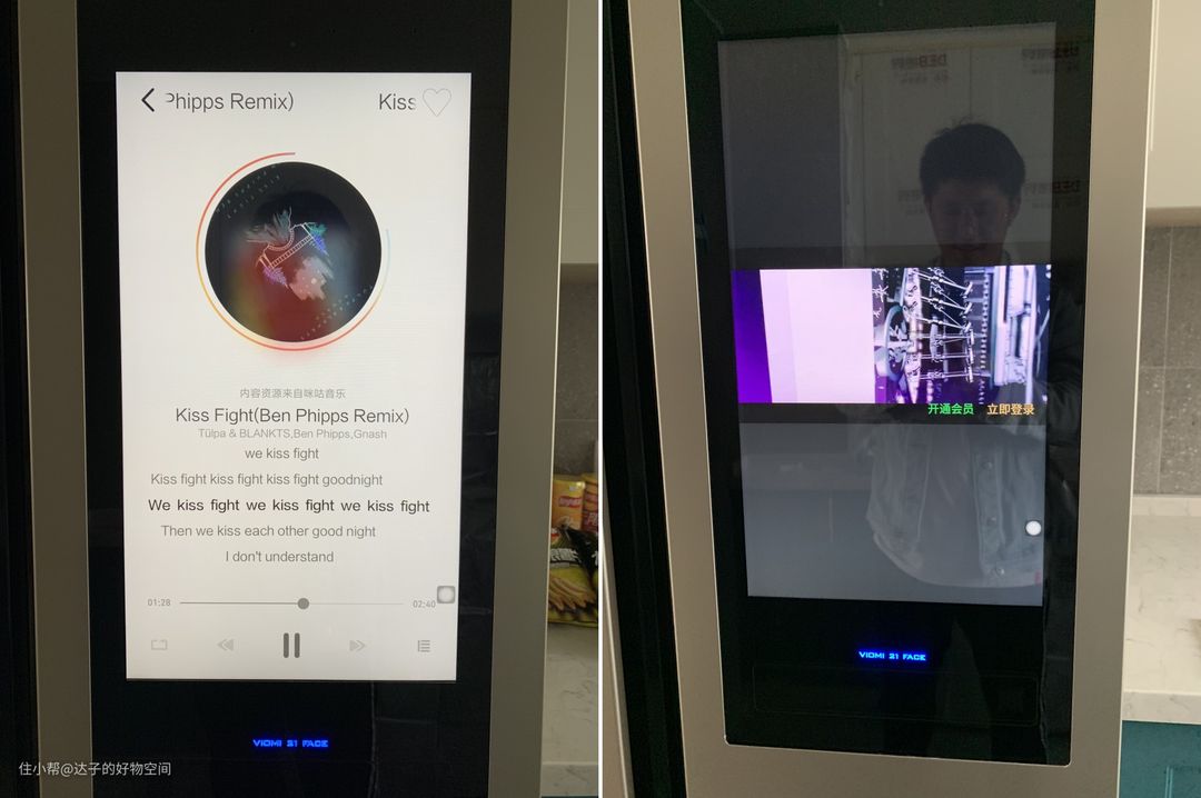 当然,因为屏幕是竖屏,因此视频播放的时候,界面会有点奇怪,这个适应一下就OK了。毕竟手机可以横过来拿,冰箱可不能横过来放啊~~毕竟是附加功能,理解一下吧。