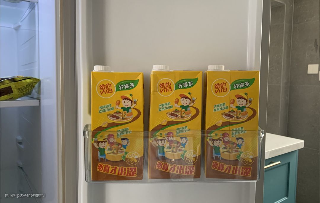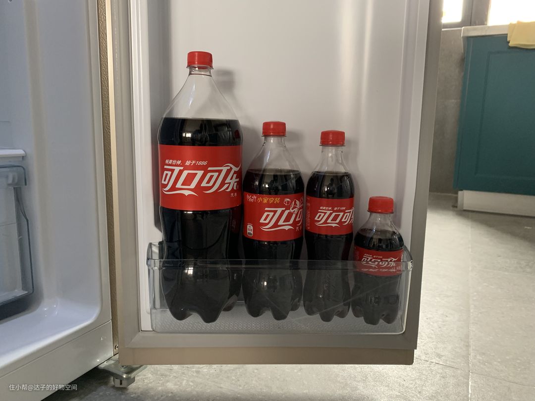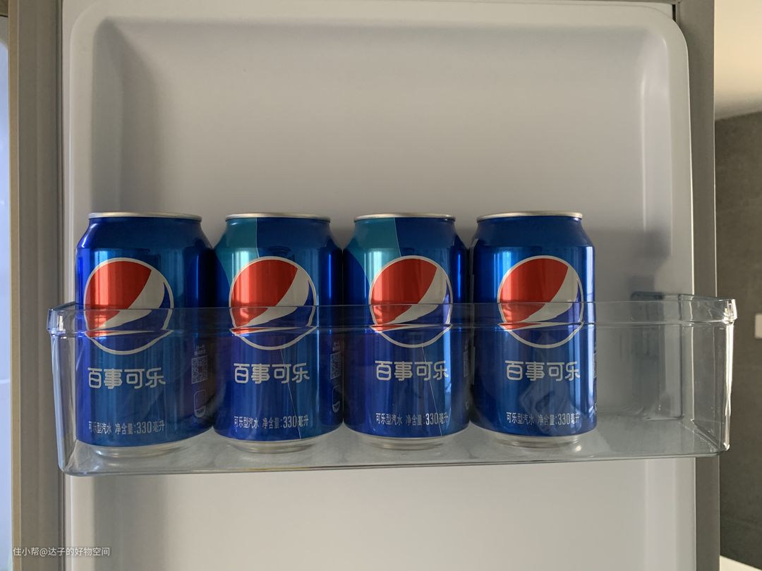 再来看下门板储物能力。每一层最少可以放4罐330ml的肥宅水,如果不在乎罐子被轻微挤压的话,放5罐也是OK的。