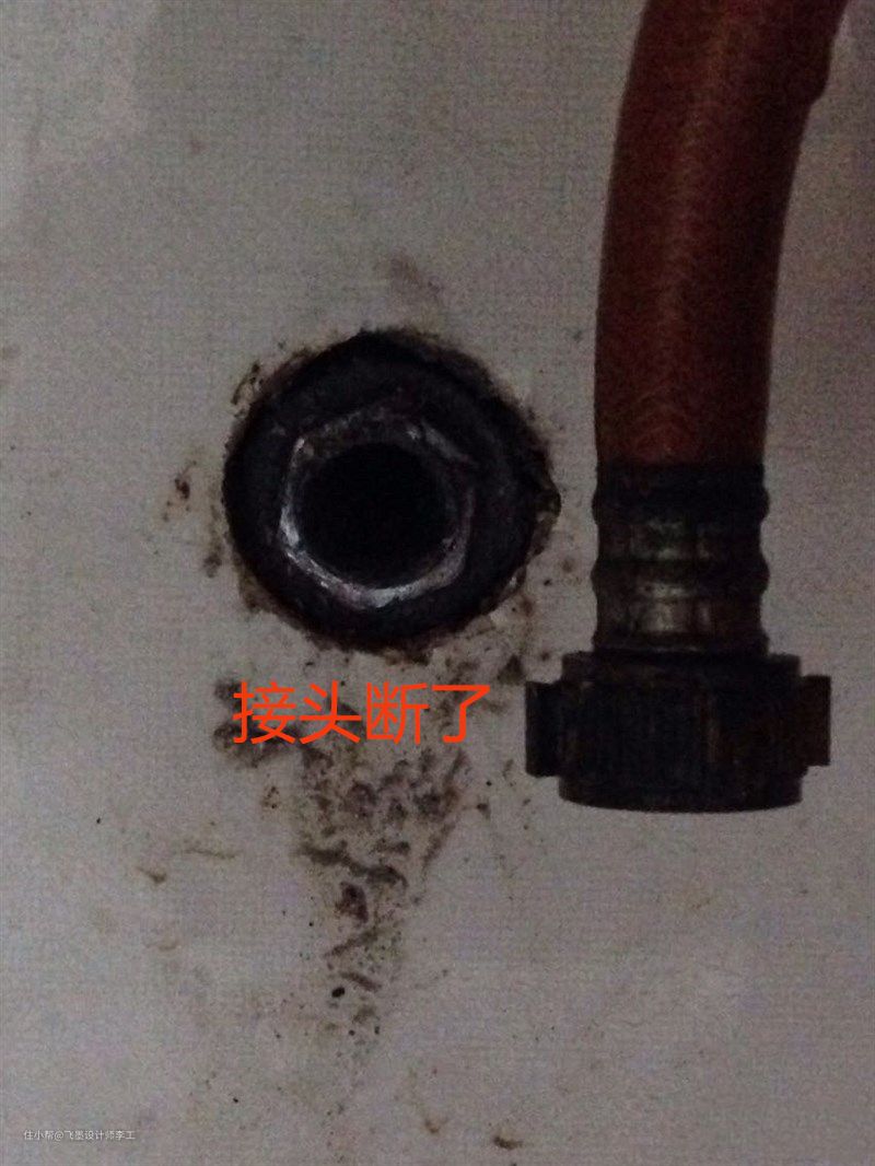 而我家的水管接头由于在墙外,所以更容易会发现,能及时维修。所以说水管接头凸出在墙外,虽然有些难看,但是却更安全,反正后期外面都会装柜子,全部遮住就好。最后师傅告诉我,只要是装在柜子里的水管接头都可以这样做。