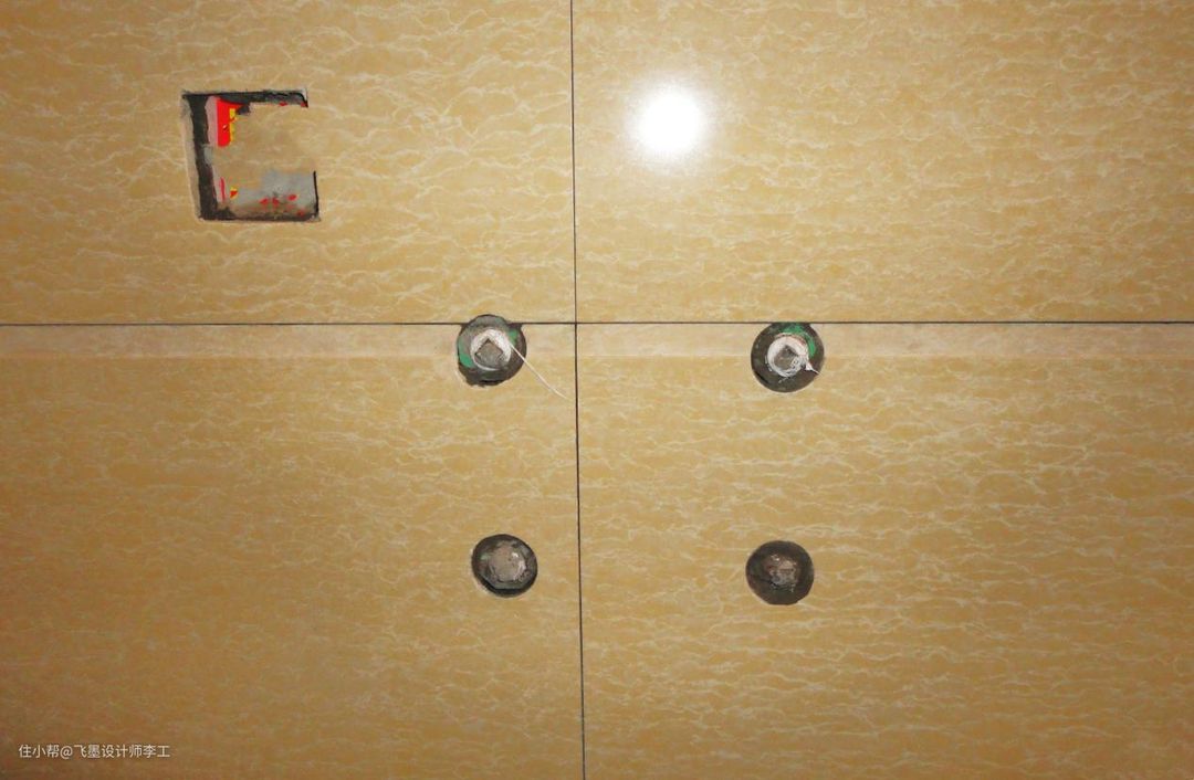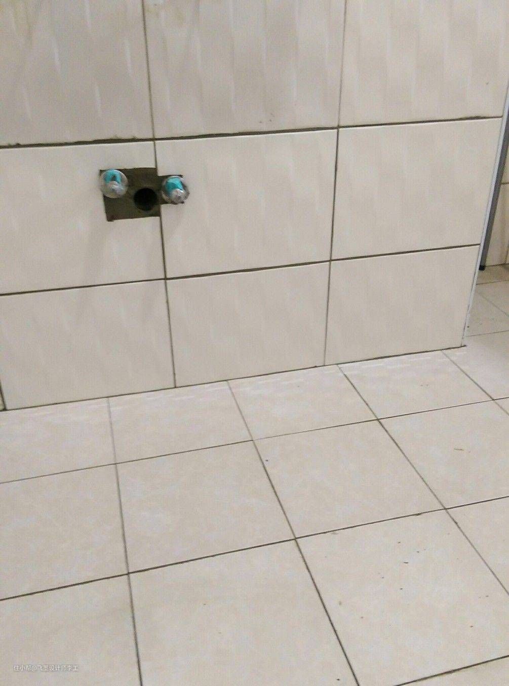 下面我们先来看看师傅口中的传统做法,一般水管接头在墙壁贴完瓷砖后都会凹进去2mm,不会出墙,后面安装完三角阀后,几乎都看不到里面水管的,看起来比较美观。