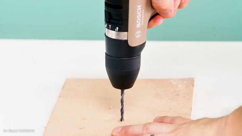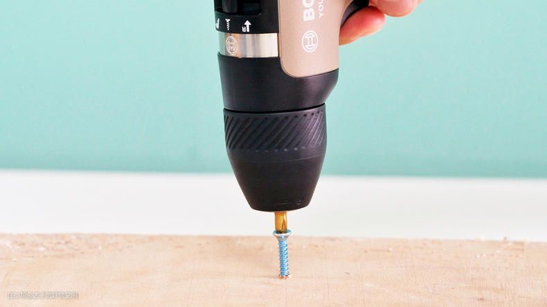 细节方面,虽然小金钻的外观非常简约,但是该有的功能一个没落下。在小金钻的顶部有三个档位分别对应卸掉螺丝(反向旋转)、拧紧螺丝(正向旋转)以及电钻档位。其中拧紧螺丝转速最高300转/分钟;平钻档位转速最高1000转/分钟。这个调档功能在我看来非常创新,我从来没有在传统电钻上看到过。传统电钻需要自己调节速度和扭力,对使用者有一定的门槛,除了专业的操作师傅,其实大部分家庭用户是不熟悉什么样的速度扭力组合适合干什么样的活,最后往往适得其反,不是力不够就是力太大把螺丝打花。这把小金钻从根本上改变了使用思路,用的人只需要选择用途:拧紧螺丝,拧松螺丝,还是平钻钻孔,并调到相应的功能处,一目了然,非常直观,就不需要再设定其他复杂参数了。从这一点上可以感受到,博世这款电钻是专门为家庭用户的需求所开发的。