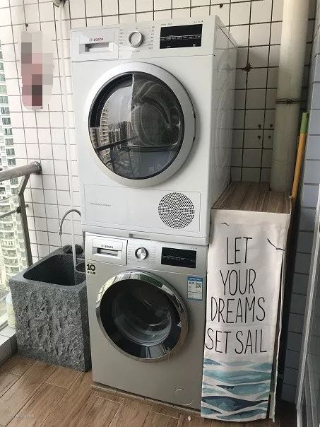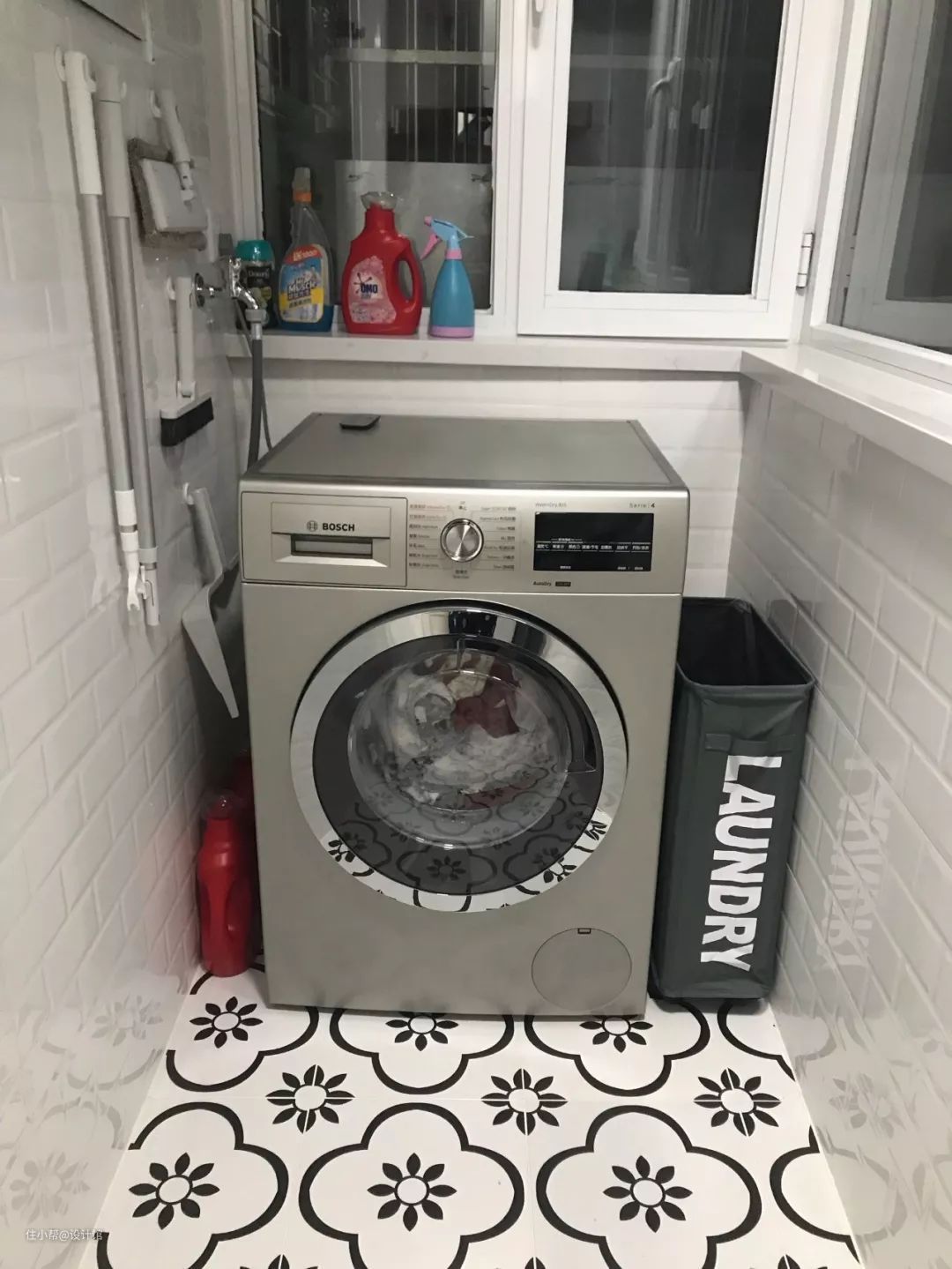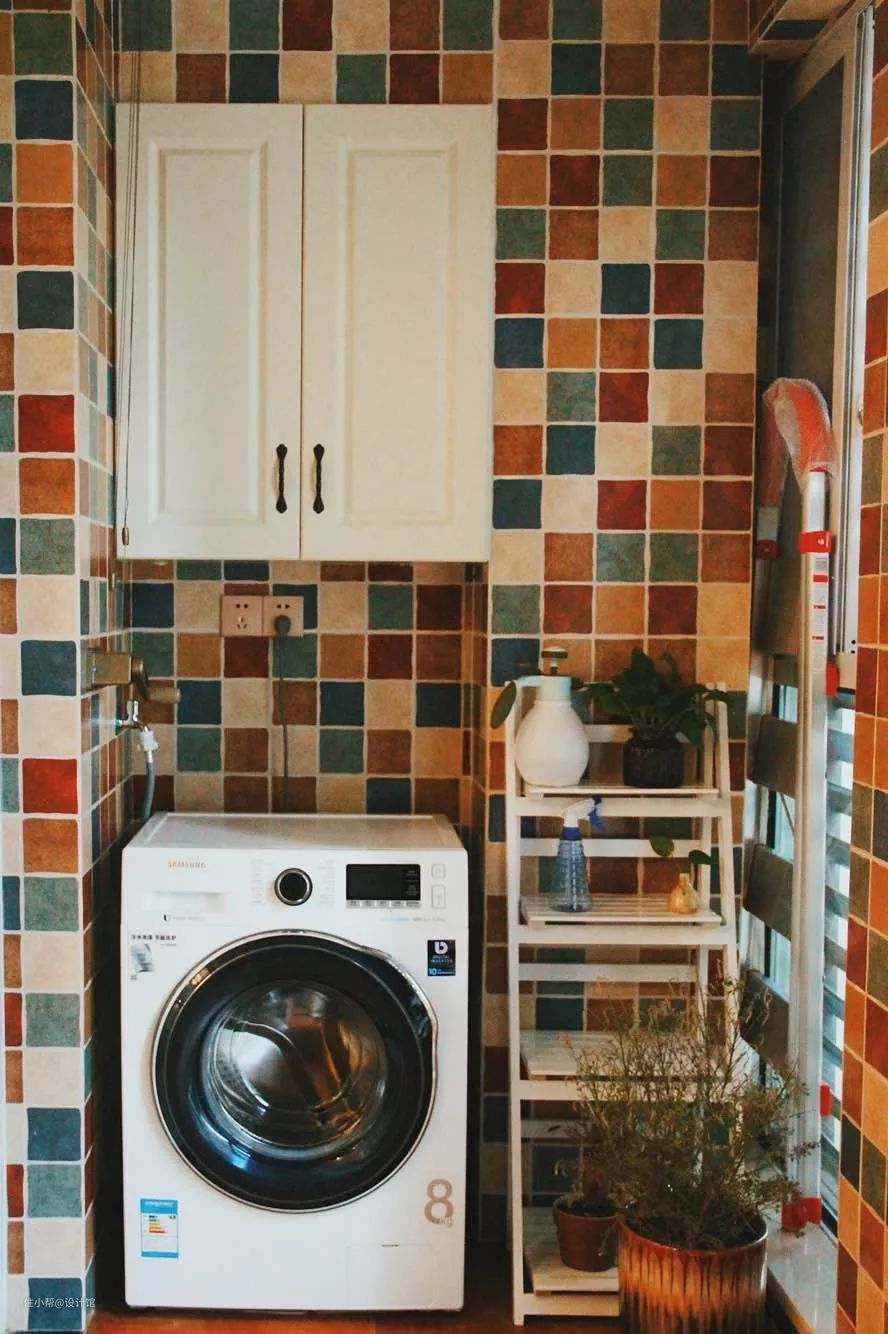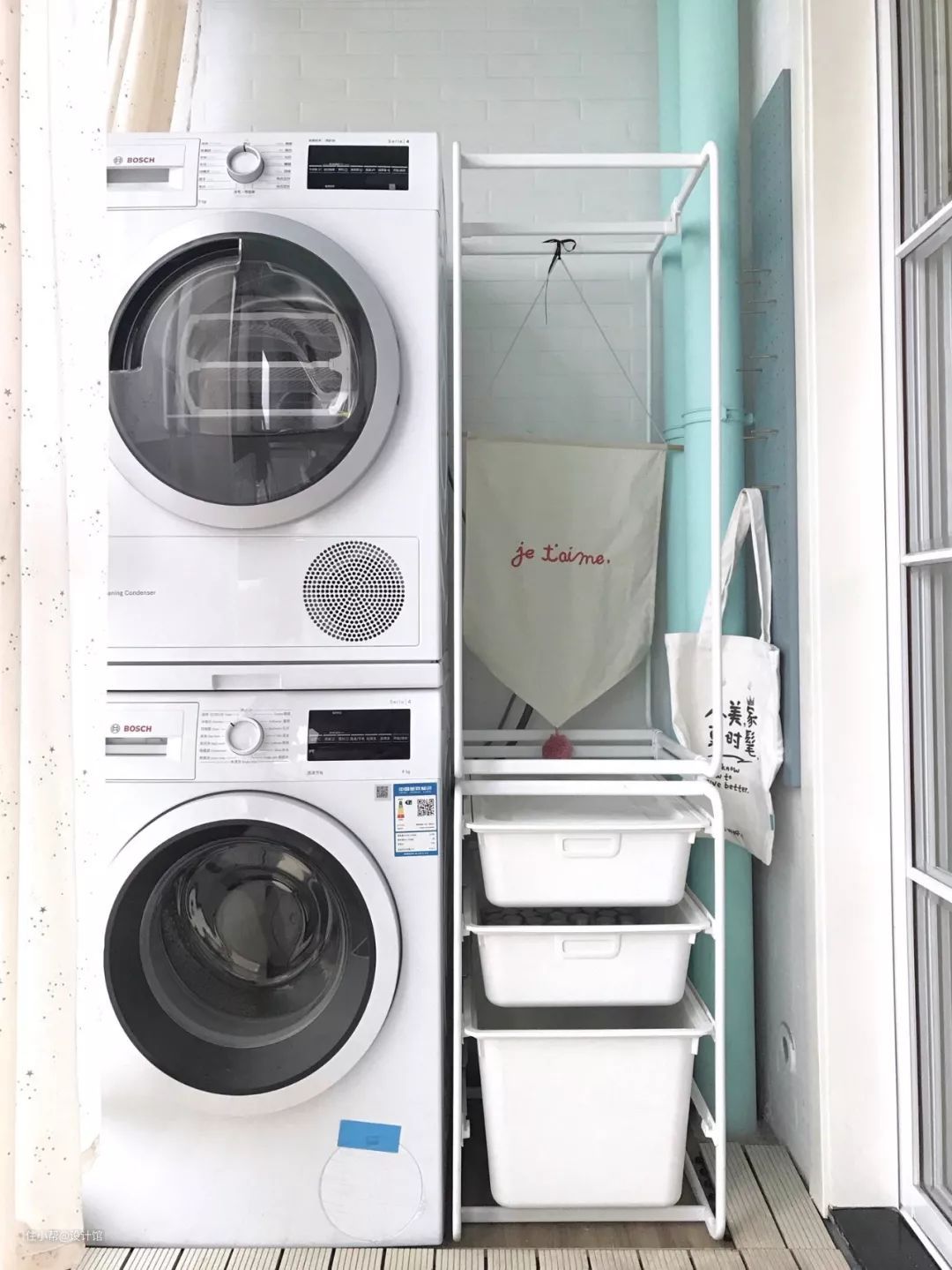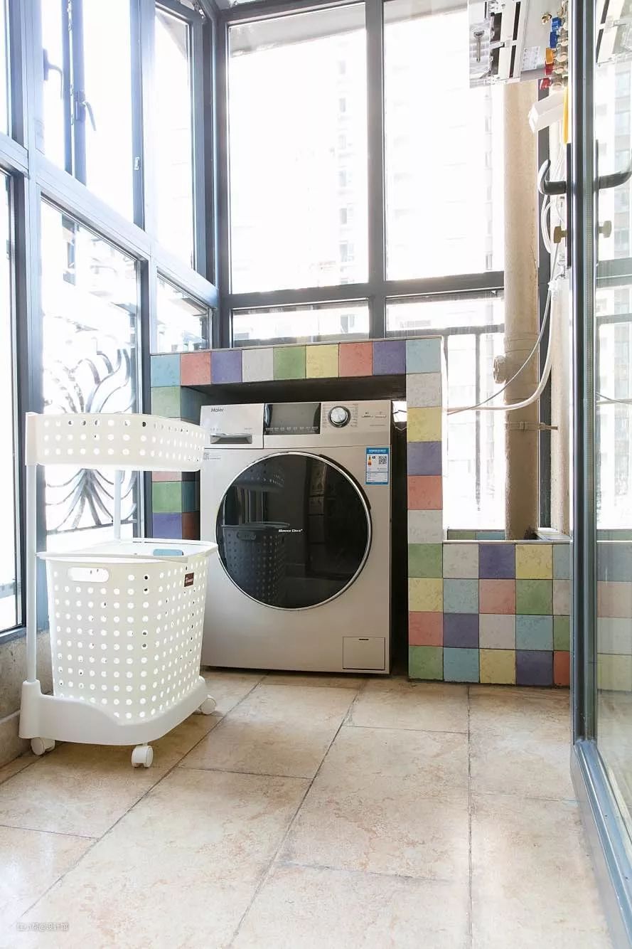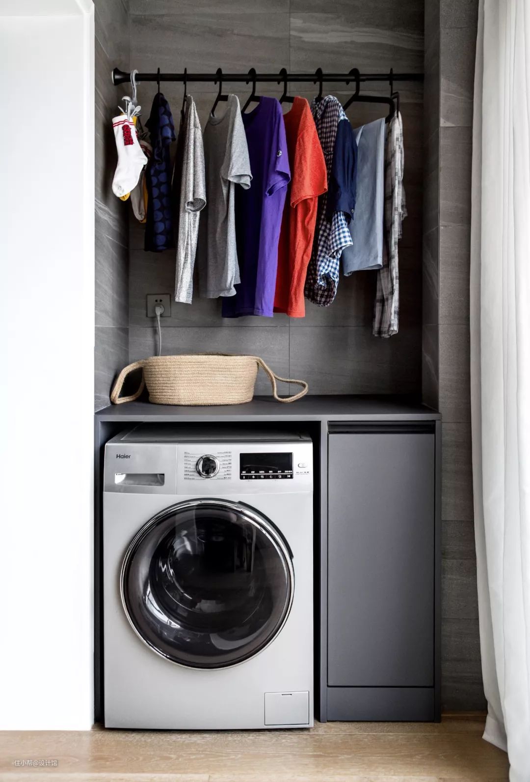 在于空间是极度紧凑的、刚好只够摆下洗衣机的情况,建议这种小阳台在选择洗衣机的时候就要看好洗衣机的尺寸,避免买了洗衣机太大摆不下的尴尬。而这种阳台洗衣机旁的空位,通常无法利用就可以留空通风,让洗衣机保持干燥了。