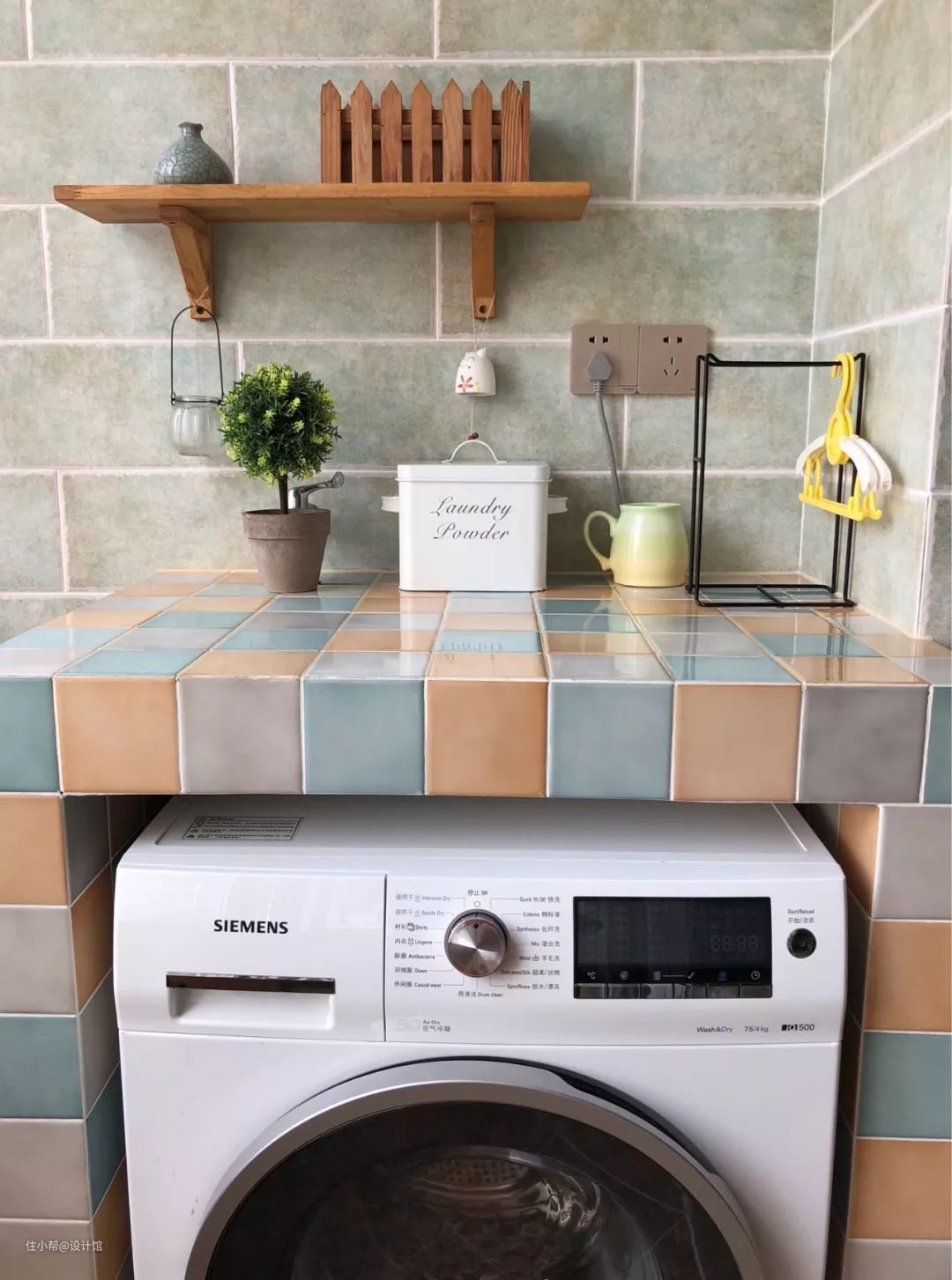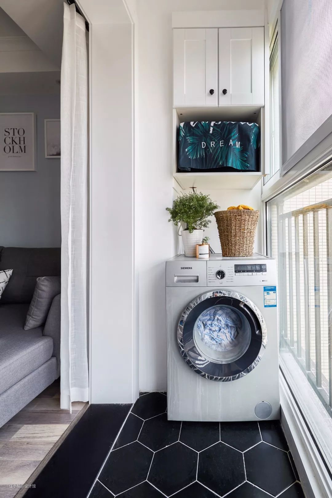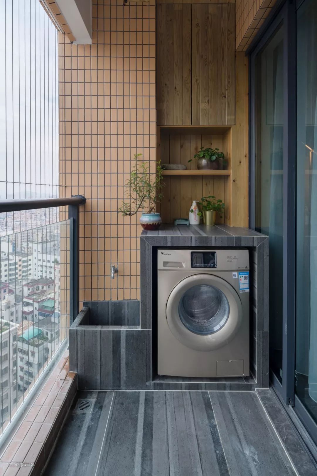 阳台在大多数普通家庭中,它都是一种作为洗衣服、晾衣服的家务空间,因此这个空间少不了摆上一台洗衣机,而在宽度位置相对宽裕的户型中,很多人家还会在阳台洗衣机的基础装多一个洗手盆,方便洗衣机以外的手洗衣物,偶尔洗洗手也有个方便的位置。然而在一些面积紧凑的户型中,小阳台在放置洗衣机后就装不了洗手盆了,但是不装洗手盆的话又感觉洗衣机旁边那点空间太浪费了,其实多加思考的话,这个小地方还是有很多可用之徒的,今天我们就来聊聊如何利用设计这种情况的阳台吧!