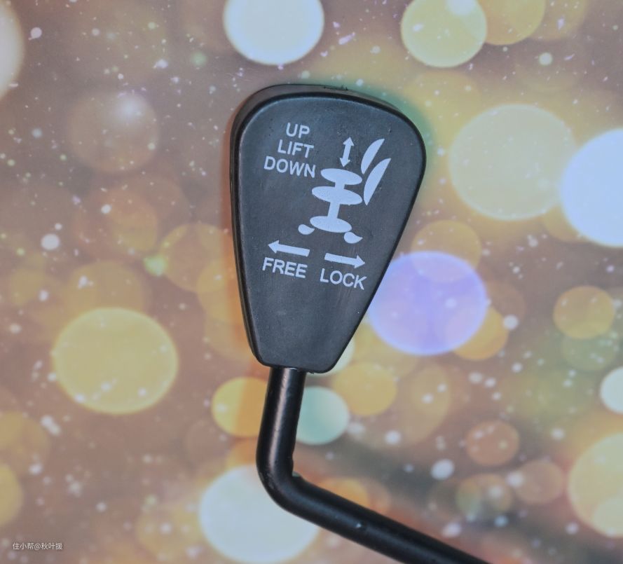 MAG CH110的升降调节控制杆,向上调节高度时人是不能坐在椅子上的,而向下调节时则需要有人坐在椅子上(控制杆稍向上抬,抬屁股,上升。控制杆上抬、不抬屁股、下降)。这个控制杆跟角度调节的扳手是平时使用最多的部分,所以这两个部位的做工和质量就决定了这把椅子的使用寿命。