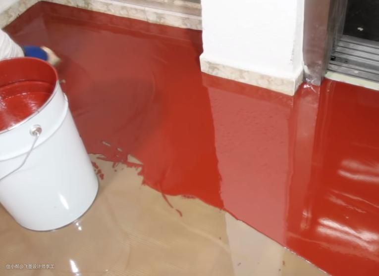 等到底漆全部刷涂完之后,再开始刷涂红色油漆(大红的油漆实在辣眼睛,大家想要在地砖上刷涂油漆翻新的话,油漆颜色最好与家里整个色调和风格相搭配才行)