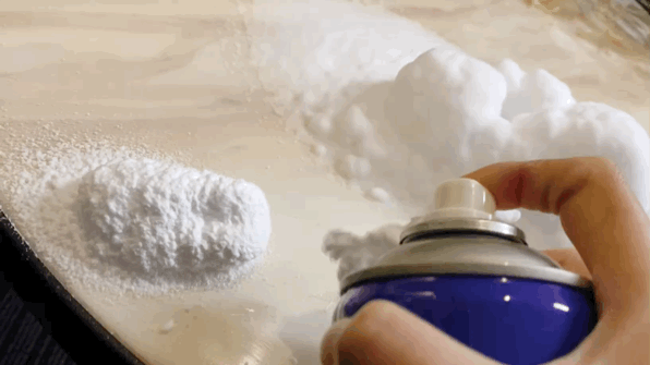大概30分钟后,和第一轮一样,在4块标了号的桌布上喷涂相应的清洁剂,然后静置适当时间。